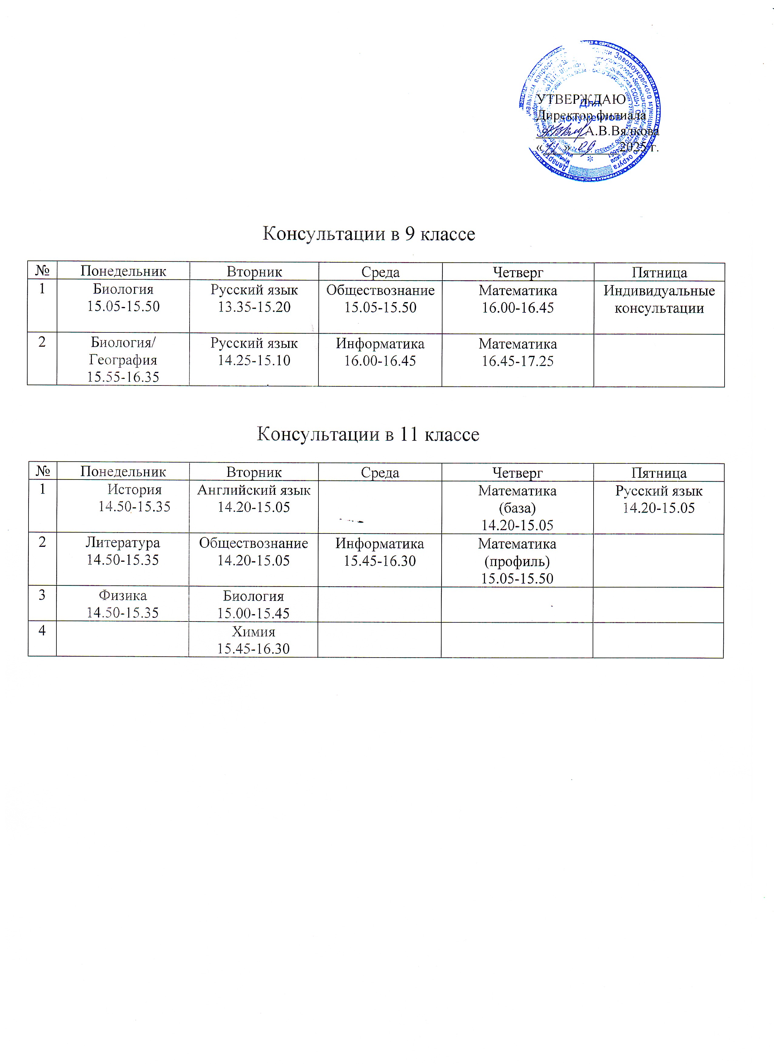 РАСПИСАНИЕ проведения консультаций по подготовке к ОГЭ, ЕГЭ в 9,11 классах на 2025-2026 учебный год
